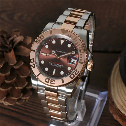 Honoring the iconic Rose Gold Yacht Master model, this watch combines sophistication and functionality, perfect for both nautical adventures and elegant occasions.